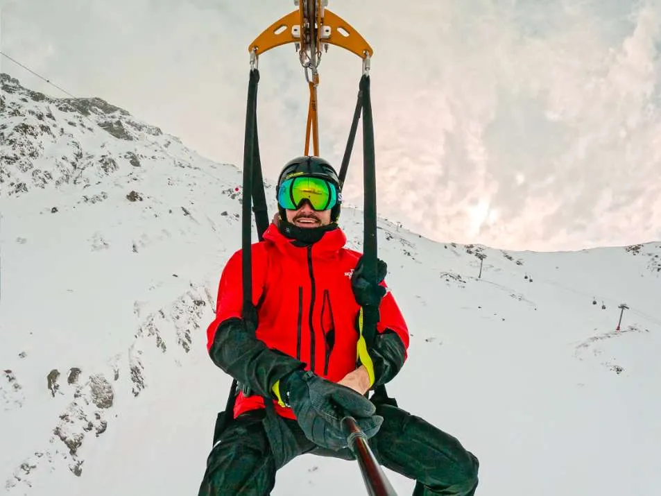 Een snellere afdaling dan met deze Tyrolliene zul je niet vinden in Les Arcs!