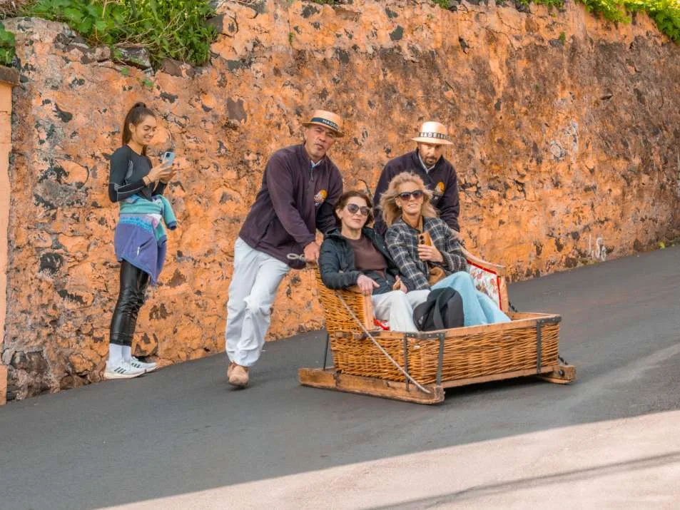 Tot slot is er nog één heel erg typische activiteit die je in Funchal absoluut gedaan moet hebben, en ook deze ligt vlakbij de Funchal Cable Car en de Monte Tropical Garden. In het verleden namen (rijke) inwoners van Funchal namelijk de slee om snel naar beneden te komen. Tegenwoordig is dit vooral iets wat toeristen doen, maar dat maakt het niet minder leuk! In de zogenaamde “Toboggan” word je in de juiste richting geduwd door twee mooi uitgedoste locals en onderweg krijg je –uiteraard– het ene na het andere vergezicht over Funchal, de oceaan en de groene omgeving.