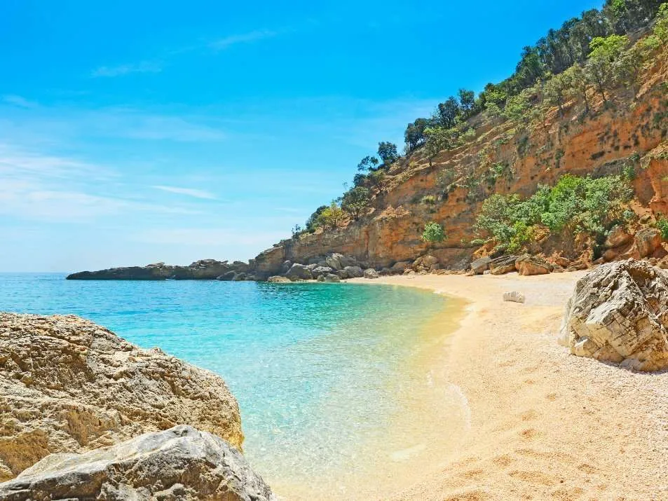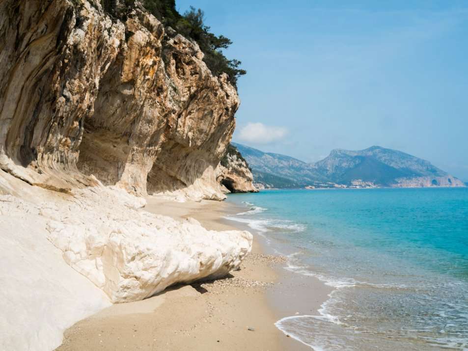 In het oosten van Sardinië ligt een ondiepe, halfronde inkeping in het land: de Golf van Orosei. Aan deze golf liggen een paar van de mooiste stranden in het oosten van Sardinië. Cala Luna, een rustig en afgelegen strand, is een voorbeeld. Om er te komen moet je met een bootexcursie mee of een paar kilometer lopen vanaf de weg of vanaf het nabijgelegen strand Cala Fuili. Maar dat zijn prachtige wandelingen, en daarna heb je ook wat. Je ziet een strand dat gemaakt is van ivoorwitte rotsen waarin zes indrukwekkende grotten en tunnels uitgesleten zijn. En een klein strand gemaakt van felwit kiezelzand aan de voet van de hellingen, waar de schaduw van pijnbomen overheen speelt.