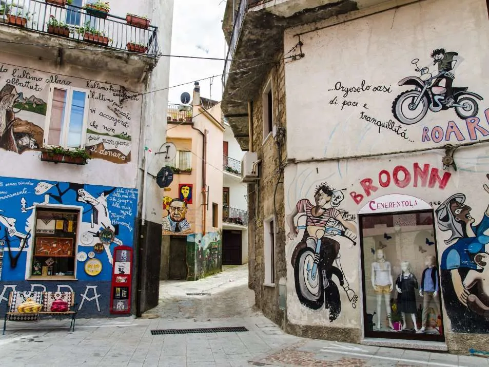 Eén van de interessantste plaatjes is Orgosolo, waar in 1969 een groep anarchisten begon met het maken van politieke protestschilderijen. Dat sloeg aan, en op dit moment het grootste deel van de muren van Orgosolo ondergekalkt. Niet alleen met politieke prenten, maar ook met plaatjes uit het traditionele leven van de bevolking. Daardoor is een tripje naar Orgosolo een tip voor toeristen die op cultureel vlak wat te doen in Sardinië zoeken en een huurauto hebben.