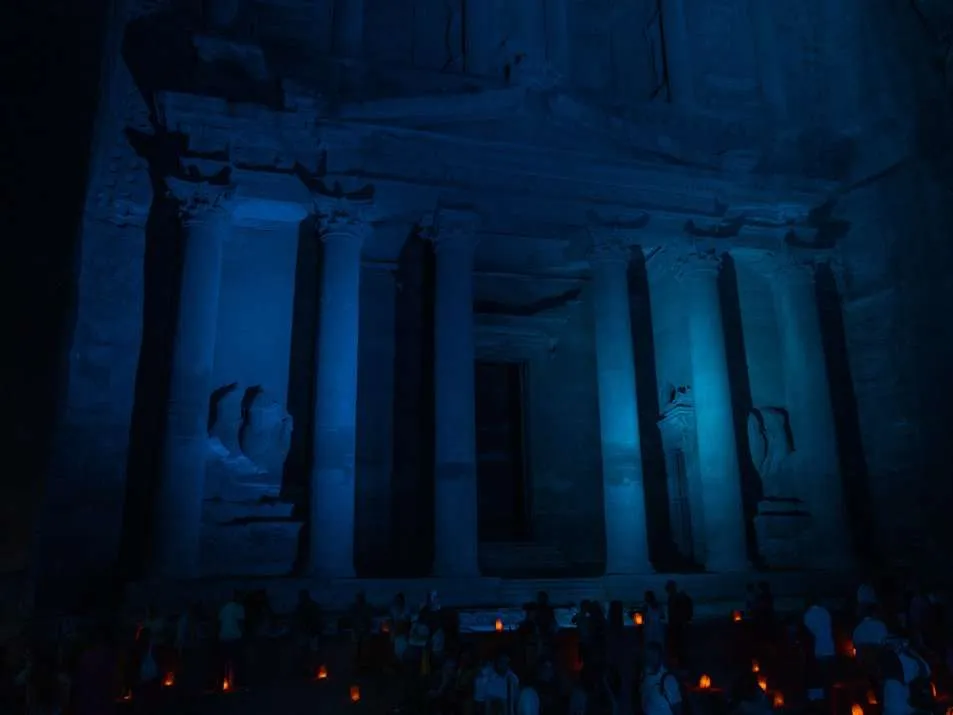 Op sommige dagen (maandag, woensdag, donderdag) wordt Petra ook na het sluitingsuur (19u ’s avonds) nog een keertje opengesteld voor toeristen. Petra by night is een spektakel waarbij de eeuwenoude stad gedeeltelijk wordt verlicht met duizenden theelichtjes. Niet alleen de Schatkamer krijgt een gouden gloed, maar ook de weg er naartoe wordt mooi opgelicht.