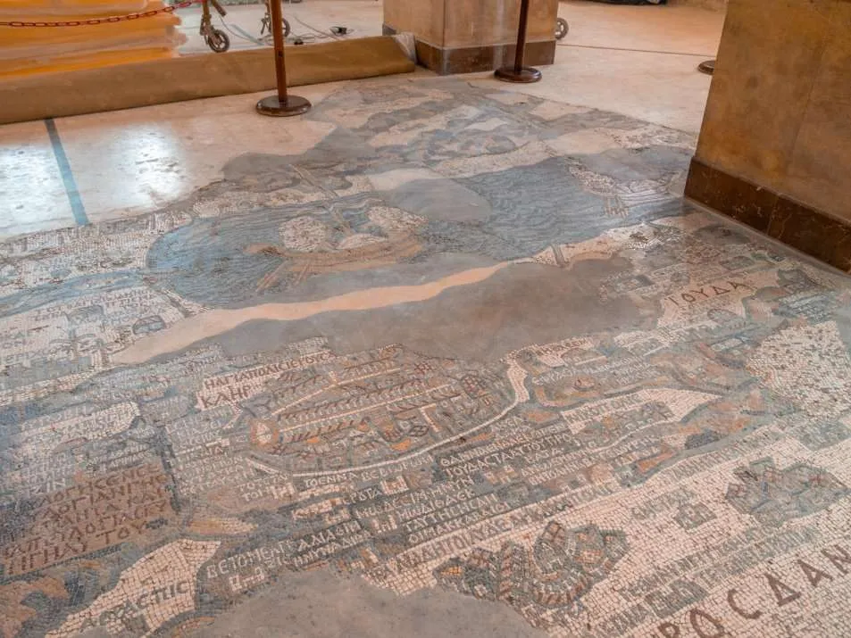 Een leuk weetje: op de mozaïekkaart zie je vissende bootjes op de Dode Zee varen, terwijl dat natuurlijk absurd is omdat er helemaal geen leven in deze zoute watermassa mogelijk is. Bijbelse verhalen vertellen ons dat deze vruchtbare vallei, samen met het beruchte Sodom en Gomorra, door God werd verwoest omwille van de pure slechtheid van de mensen die hier woonden. Historici nemen dus aan dat deze mozaïekkaart het beeld schept van voor deze bestraffing plaatsvond… Wat een mozaïek ons al niet leren kan!