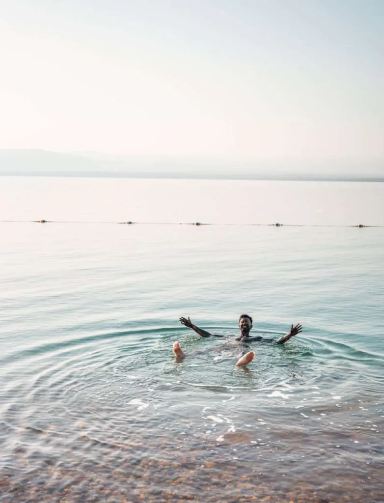 Dat heeft ongetwijfeld te maken met de grappige eigenschappen die het water door al dat zout heeft gekregen. Want door zo’n hoge zoutconcentratie lijkt het namelijk alsof je gewichtloos bent in dit water. Meteen wanneer je je in het olieachtige water laat vallen, drijf je terug naar de oppervlakte. Welke positie je ook aanneemt! Zelfs de Supermanhouding aanhouden wordt hier een makkie!!