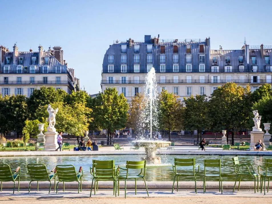 Ten oosten van de Place de la Concorde ligt een beroemd park, de Jardin des Tuileries. Het is een uitgestrekte tuin met vierhoekige vlakken, vijvers, hagen en bloemperken. Hier is het lekker rustig, en je kunt er genieten van een pannenkoek met Nutella,een frisdrankje en van het mensen- en dierenleven tussen het groen. Het park wordt aan weerszijden afgesloten door twee kunstmusea en door een triomfboog die wel de Petit Arc de Triomphe wordt genoemd.