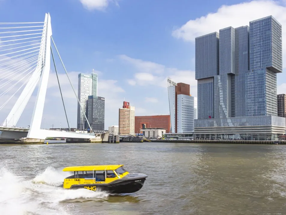 • In zo’n waterrijke stad is het geen wonder dat er een goed ontwikkeld netwerk van watertaxi’s bestaat. Die brengen je van kade naar kade en leggen op meer dan 50 locaties in Rotterdam aan. Betaal voor je kaartje (met het gewenste aantal vervoerszones) met je bankpas of je creditcard, of maak gebruik van de Watertaxi-app. Een rondvaart door het uitgestrekte havengebied is trouwens ook erg interessant.