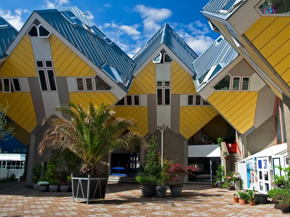 • Ook niet te missen: de kubusvormige, gekantelde woningen aan Blaak, die symbool voor de naoorlogse Rotterdamse architectuur staan. Ga ze zeker bekijken en fotograferen – zou jij in zo’n vreemde kubus willen wonen? Eentje ervan is trouwens geopend voor publiek en ik raad zeker aan om binnenin een kijkje te nemen. Nog een andere is dan weer omgebouwd tot een hostel – ook een leuke tip om te overnachten in Rotterdam, dus!