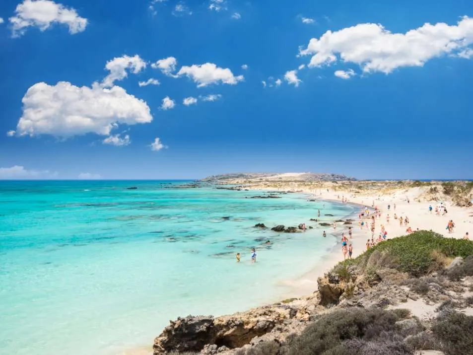 Elafonisi, één van de mooiste stranden van Kreta, is een Blue Flag Beach in de streek Chania. Dit deel van het eiland is met een huurauto of via een bustocht te bezoeken. De zee rond Elafonisi is met een diepte van maximaal een meter lekker warm en geschikt voor een casual zwempartijtje, en je kan ook over een zandbank naar het kleine eilandje Lafonisi lopen.