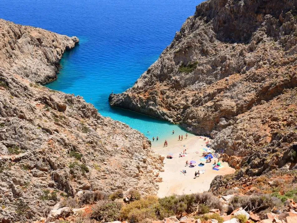Seitan Limania ligt ongeveer twintig kilometer ten noorden van de stad Chania en geeft je de kans om de foto’s van je leven te maken. Het leukste van dit strand is dat het in een kloof in de bergen ligt, zodat je een beetje het gevoel hebt dat je naar zee ‘gespoeld’ wordt. Een beetje zoals een fjord in Noorwegen, maar dan eentje waar het dertig graden is.